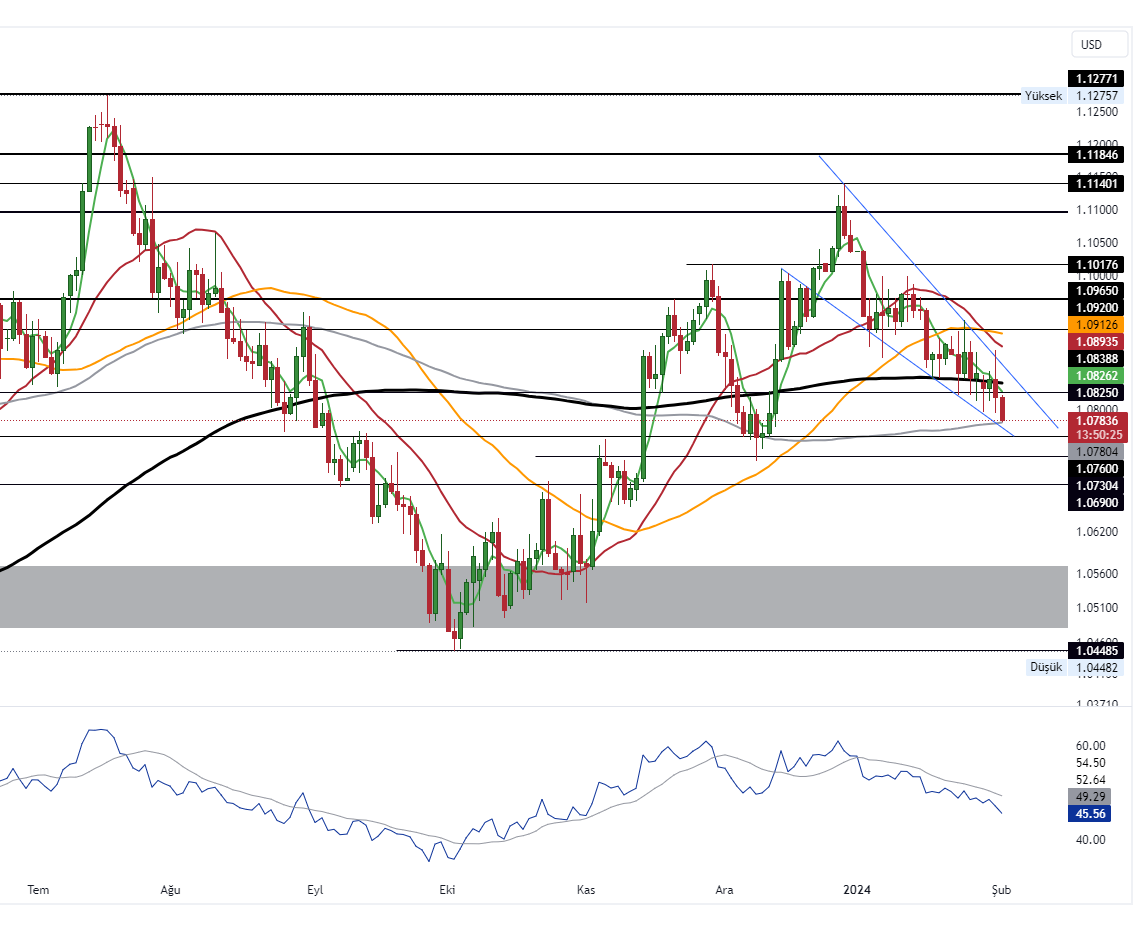 Fed kararı ve Powell’ın açıklamalarının ardından güçlenen Dolar endeksi, EURUSD paritesindeki aşağı yönlü eğilimin devam etmesine neden oldu. Gelen satışlarla birlikte 100 günlük hareketli ortalamasını test eden paritede gün içi fiyatlanmalar takip edilecek. Özellikle 1.0780 (100GHO) – 1.0760 bandı önemli bir destek konumu olarak öne çıkmakta. Olası toparlanma hareketlerindeyse 1.0825 – 1.0840 (200GHO) bandı takip edilebilir.