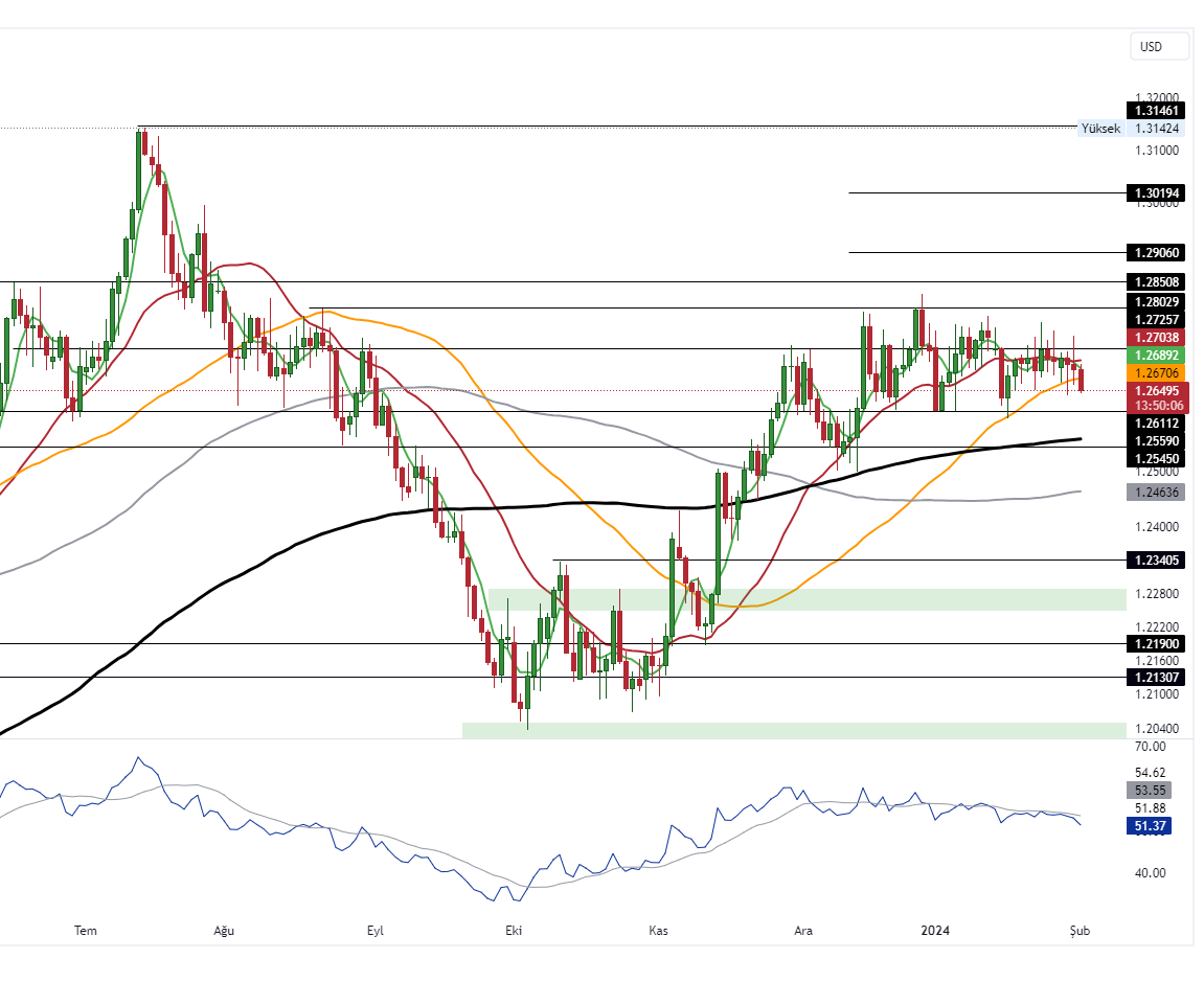 Güne satıcılı bir şekilde başlayan GBPUSD paritesinde 1.2610 ve 1.2560 (200GHO) seviyeleri destek, 1.2670 (50GHO) ve 1.2725 seviyeleriyse direnç olarak takip edilebilir.