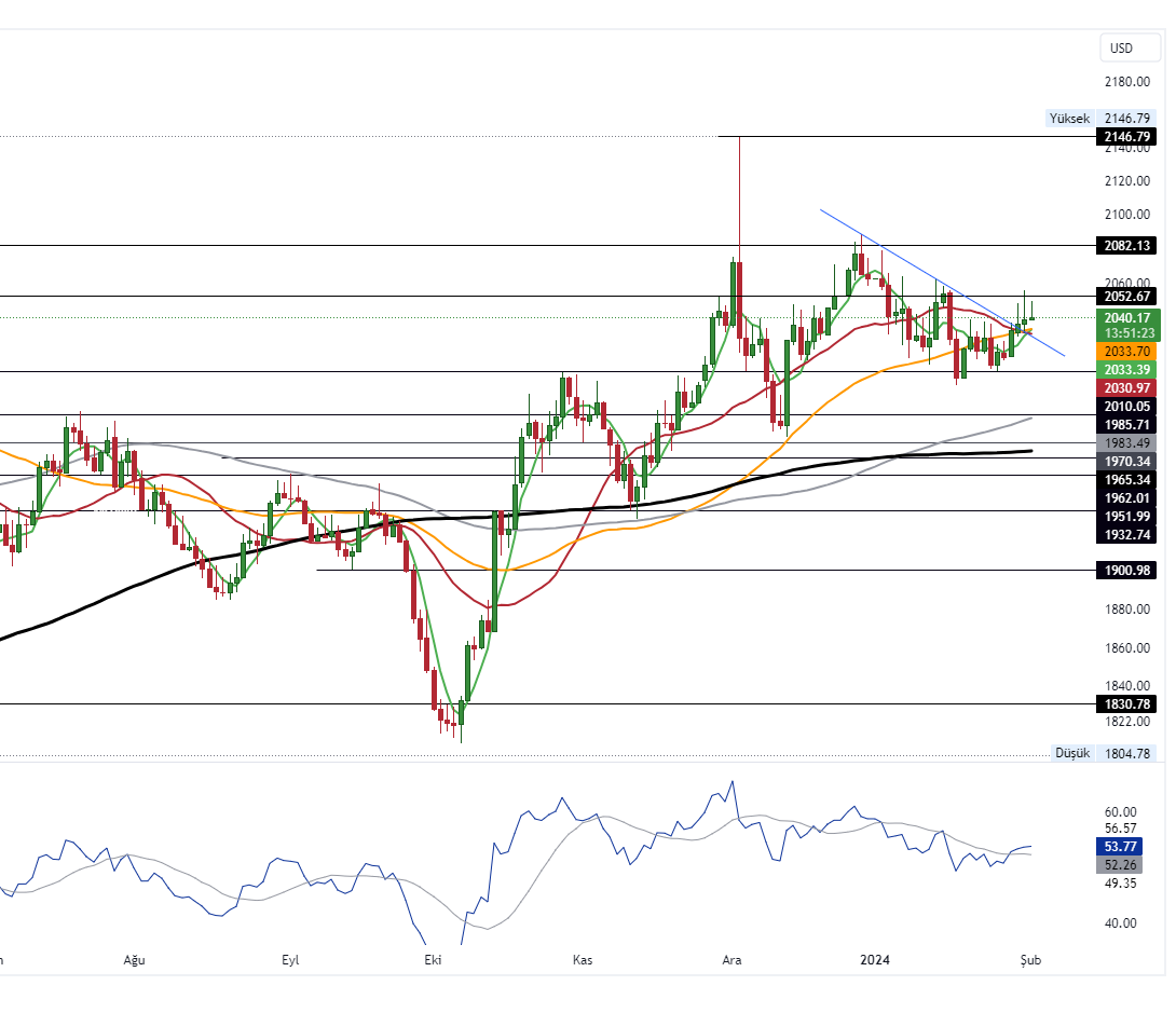 karşılayarak faiz oranlarını değiştirmedi. Banka, politika faizini 22 yılın en yüksek seviyesi olan %5,25-%5,50 arasında sabit tuttu. Piyasalar, FED’in ne zaman faiz indirimi yapacağına dair ipuçları aradı. FED Başkanı Powell, basın toplantısında faiz indirimi yapmalarının mart ayına kadar pek mümkün olmadığını söyledi. Powell, bu yıl faiz indirimine başlamayı uygun gördüklerini de belirtti. Gün içerisinde ABD’den işsizlik maaşı başvuruları ve PMI verileri, Euro bölgesinden enflasyon oranı ve İngiltere’den Merkez Bankası faiz kararı takip edilecek.