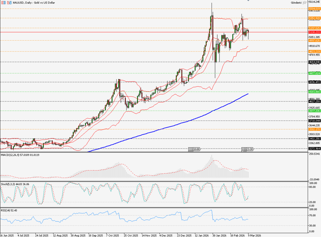 Orta Doğu’da tırmanan çatışmalar ve Hürmüz Boğazı çevresindeki askeri hareketlilik, küresel yatırımcıları ‘riskten kaçış’ moduna soktu. Bu durum, hisse senetlerinden çıkan sermayenin bir kısmının altına yönelmesini sağlayarak fiyatlarda $5.100 üzerinde güçlü bir taban oluşmasına neden oldu.