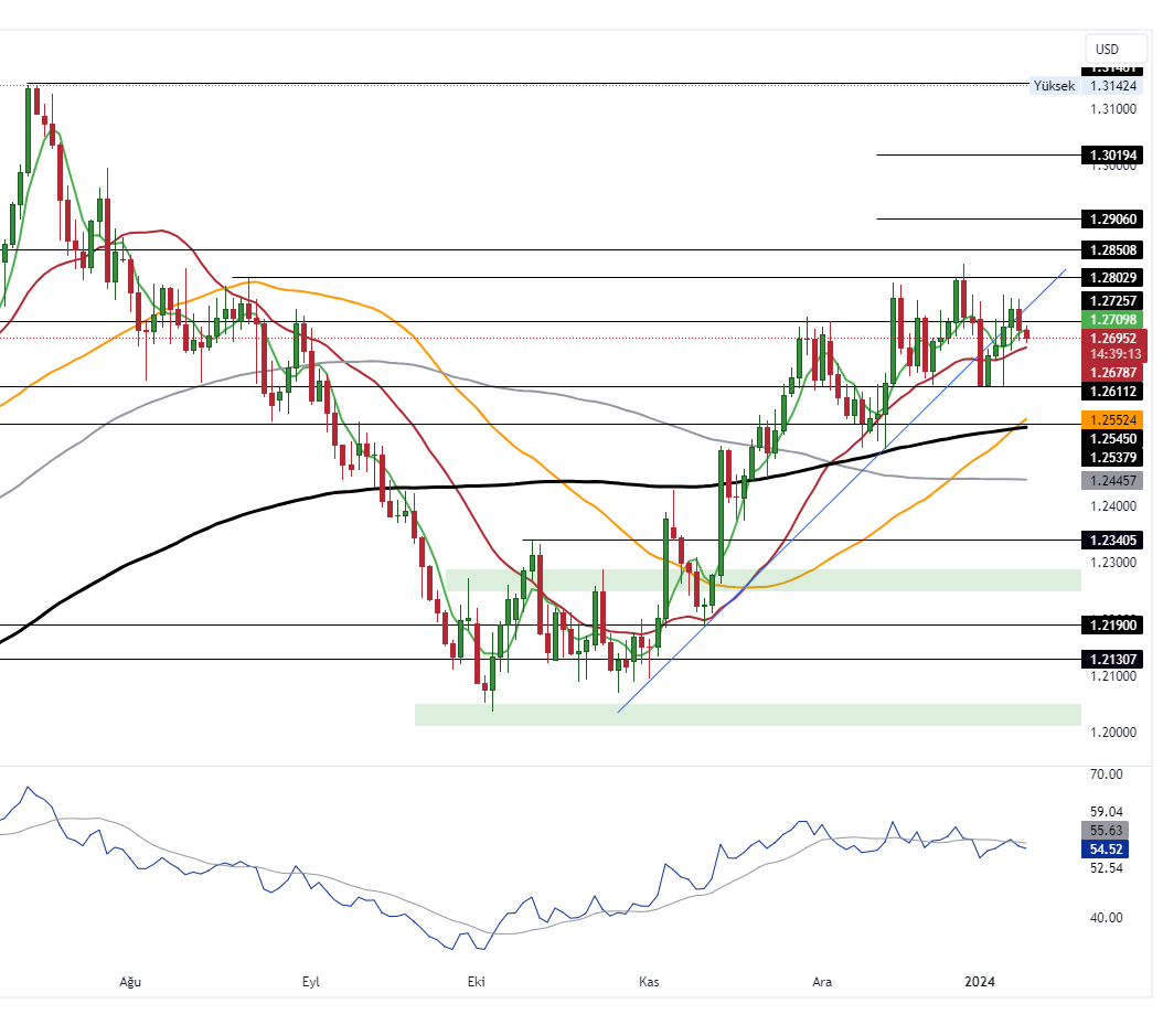 Gün içerisinde 1.2678 (22GHO) ve 1.2610 seviyeleri destek, 1.2725 ve 1.2770 seviyeleriyse direnç olarak takip edilebilir.