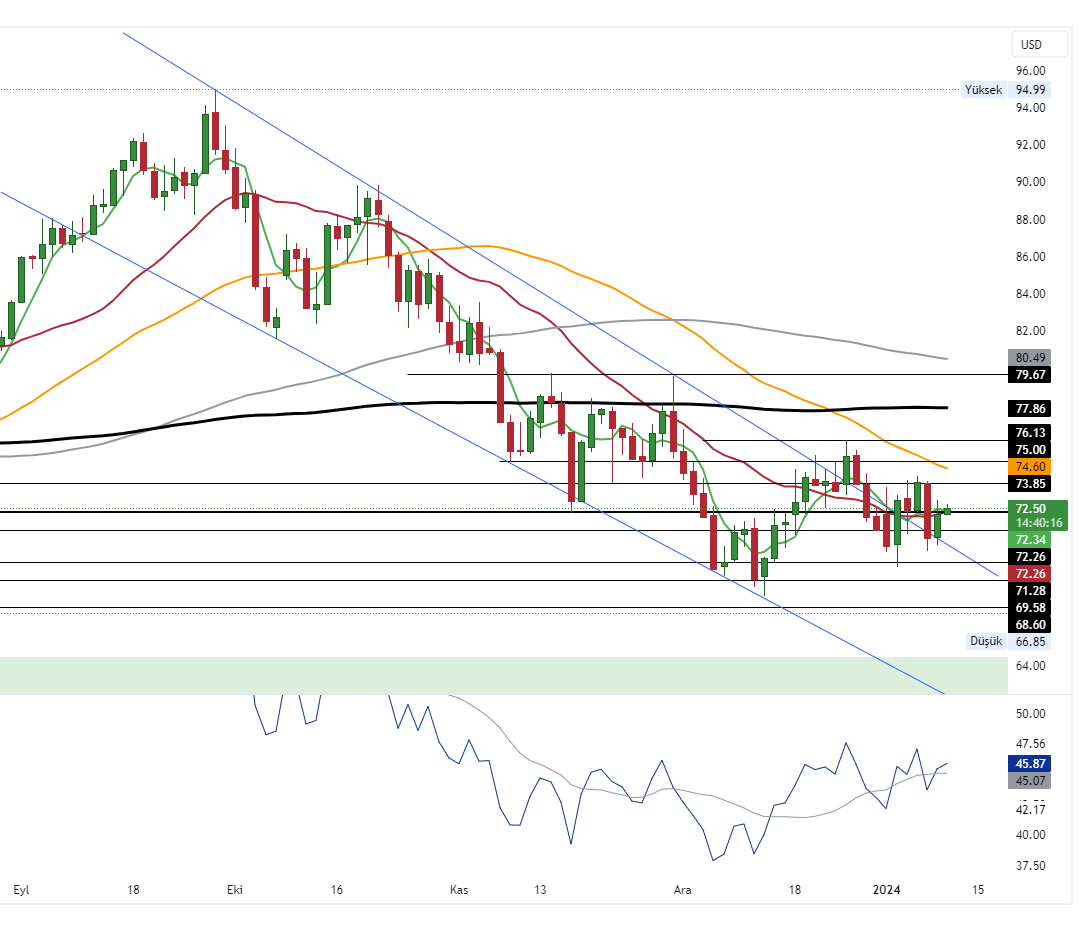 Stok verilerin pozitif etki etmesiyle birlikte güne alıcılı başlayan Ham Petrol’de 73.85 ve 75.00 dolar seviyeleri direnç, 72.25 ve 71.28 dolar seviyeleriyse destek olarak takip edilebilir.