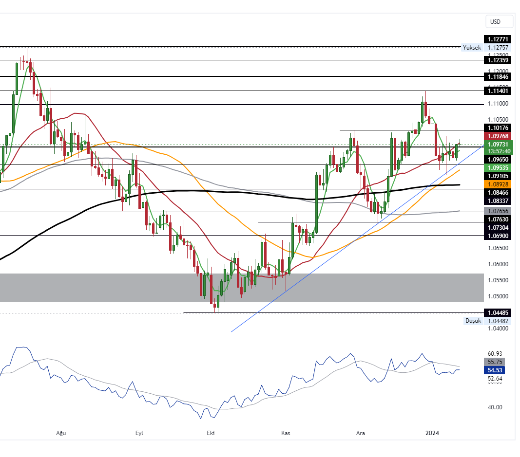 Gün içerisinde 1.0976 ve 1.1017 seviyeleri direnç olarak takip edilebilir. Aşağı yönlü hareketlerdeyse 1.0965 seviyesi altında kalıcılık, paritenin 1.0910 seviyelerine geri çekilmesini gündeme getirebilir.