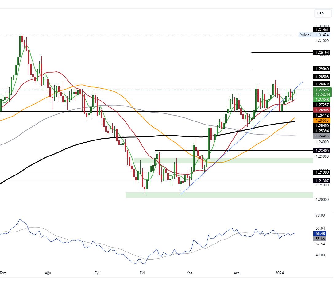 Gün içerisinde 1.2770 ve 1.2802 dirençleri takip edilecek. Aşağı yönlü fiyatlanmalardaysa 1.2725 ve 1.2690 (22GHO) destekleri önemli olacak.
