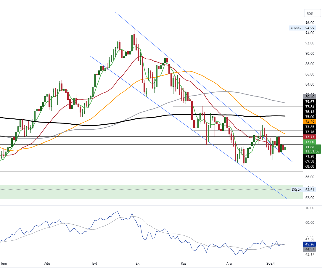 Dün açıklanan stok verisinin etkisiyle dün elde ettiği kazanımları kaybeden petrol fiyatları, yeni güne alıcılı bir şekilde başladı. Gün içerisinde 72.25 ve 73.85 seviyeleri direnç, 71.28 ve 70.40 seviyeleriyse destek olarak takip edilebilir.