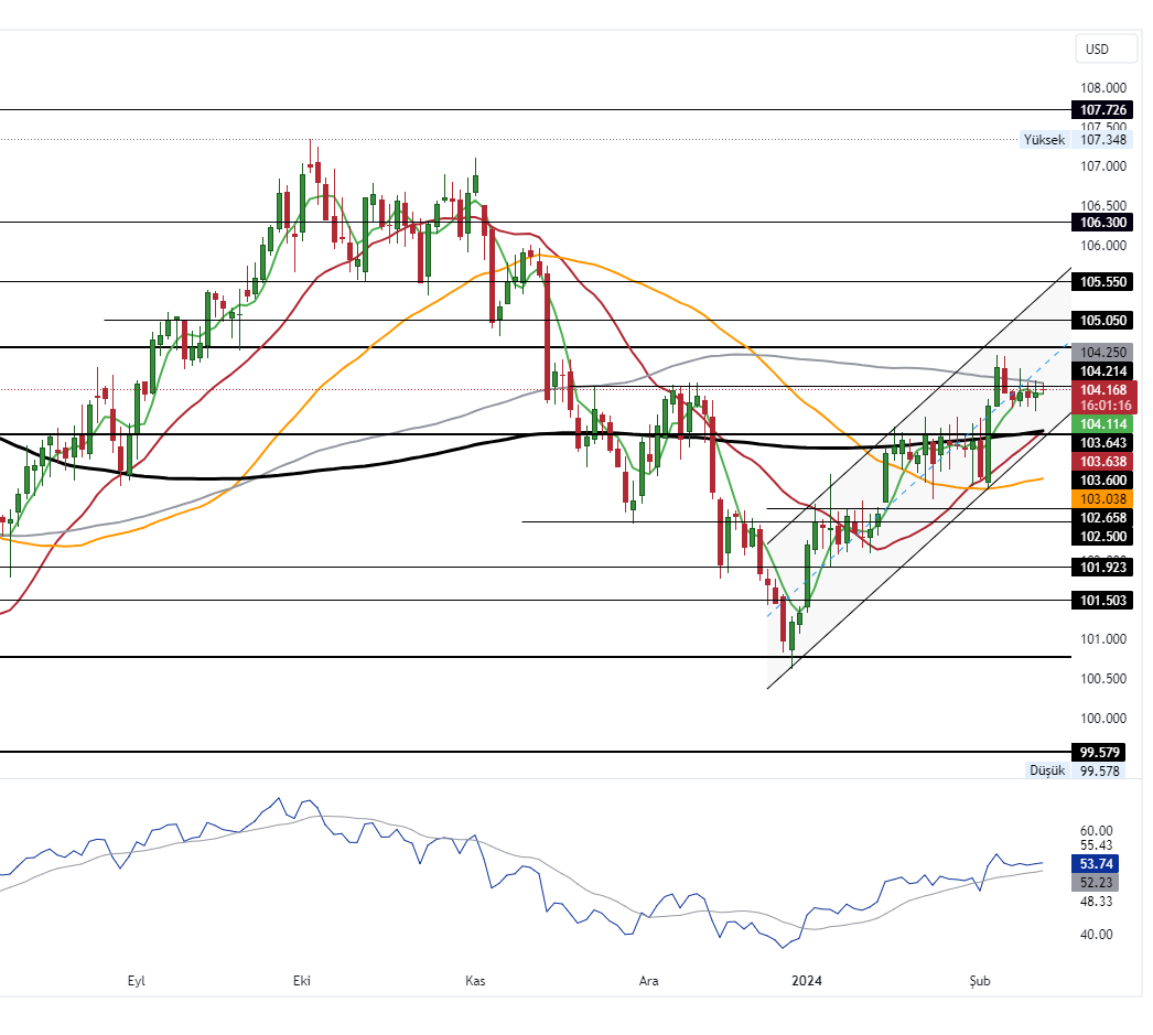 Dolar endeksi, geçen haftanın başında üç ayın en yüksek seviyesine ulaştıktan sonra, kısa süreli düzeltmeler yaşamıştı. Bugün açıklanacak enflasyon verisi öncesinde hafif alıcılı bir seyir izleyen endeksinde 103.80 ve 130.60 seviyeleri destek, 104.20 – 104.30 bandıysa direnç olarak takip edilebilir.