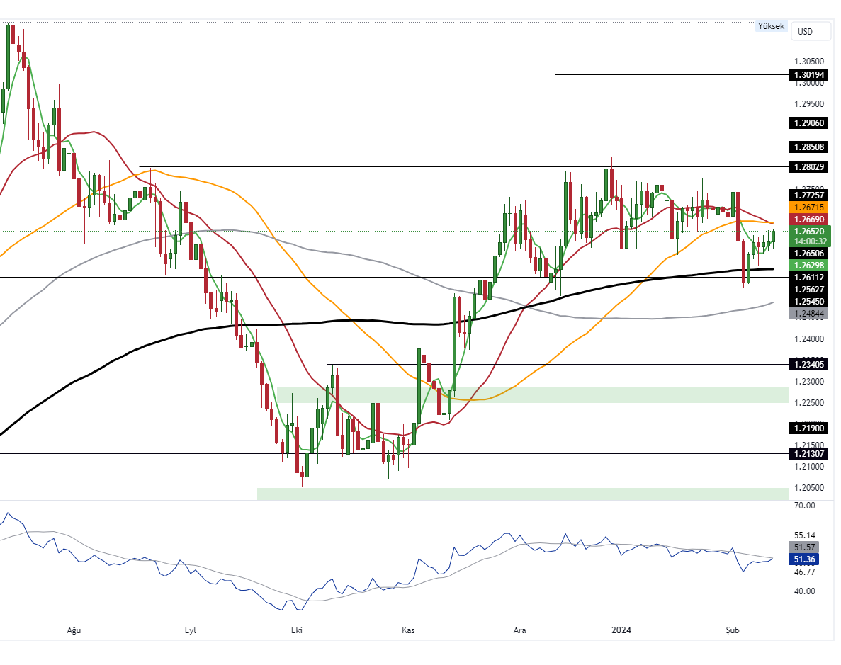 Gün içerisinde, 1.2650 – 1.2685 bandı kısa vadeli direnç olarak takip edilebilir. Aşağı yönlü hareketlerdeyse 1.2610 – 1.2560 (200GHO) bandı önemli bir destek konumu olarak izlenebilir.