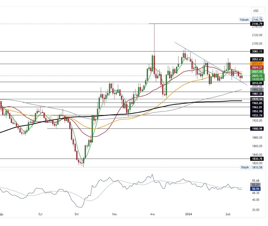 Kısa vadeli görünümde, 2020 - 2010 dolar arasındaki bölge, ons altın için önemli bir destek seviyesi olarak izleniyor. Eğer fiyat bu seviyenin üzerinde kalırsa, 2033 ve 2052 dolar seviyeleri, ons altın için potansiyel direnç noktaları olarak göz önünde bulundurulabilir.
