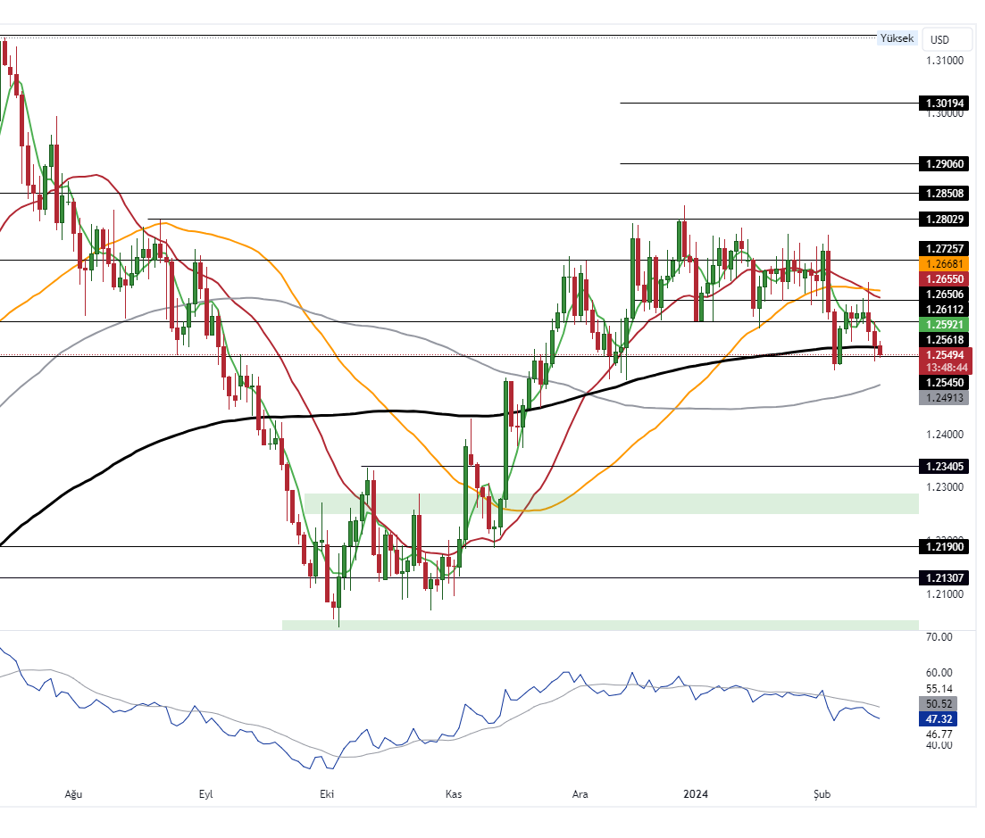 Kısa vadeli görünümde 1.2561 (200 günlük hareketli ortalama) ve 1.2545 dolar arasındaki bölge, destek olarak takip ediliyor. Bu bölgenin altına inmesi halinde paritede daha fazla düşüş görülebilir. Paritenin yükselişe geçmesi içinse 1.2610 ve 1.2650 dolar arasındaki bölgeyi aşması gerekiyor