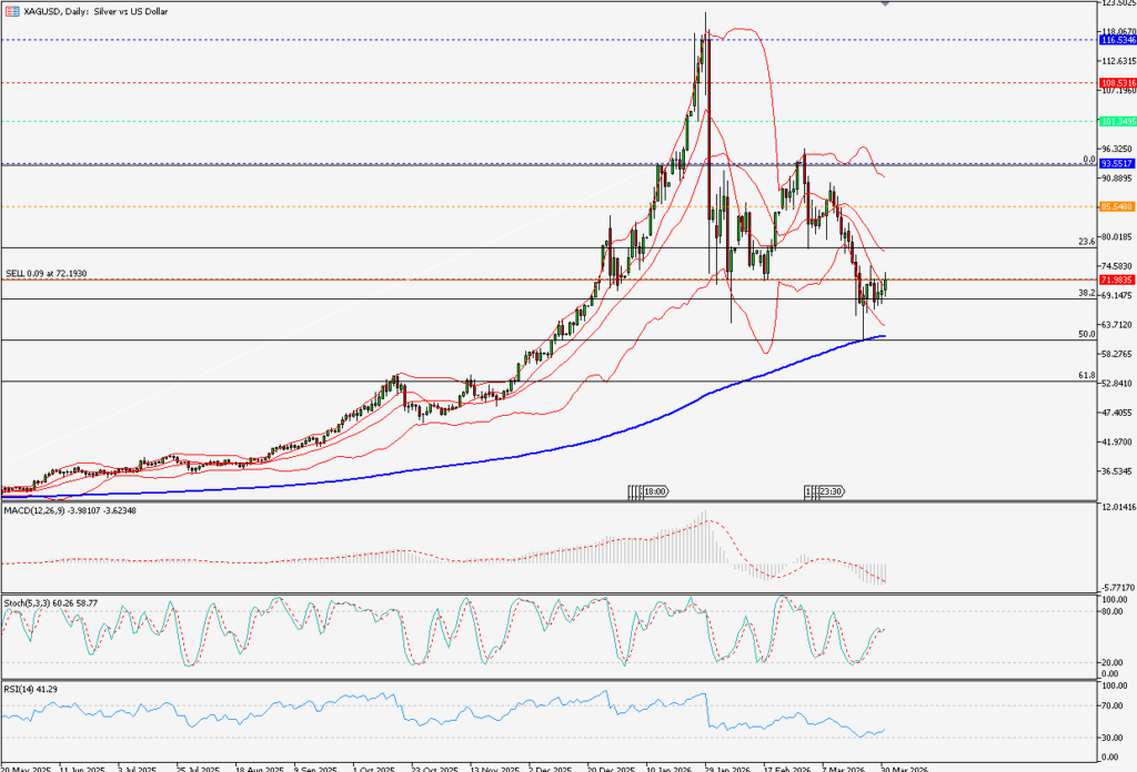 Başkan Trump’ın dün geceki ulusa seslenişinde, İran’a yönelik operasyonların önümüzdeki 2-3 hafta içinde ‘en sert seviyeye’ çıkacağını ve stratejik hedeflere ulaşıldığını açıklaması, piyasalarda ‘güvenli liman’ olarak dolara olan talebi artırdı. Bu durum, gümüşün dün test ettiği $75$ üzerindeki kalıcılığını bozarak fiyatı $72$ desteğine kadar geri çekti.