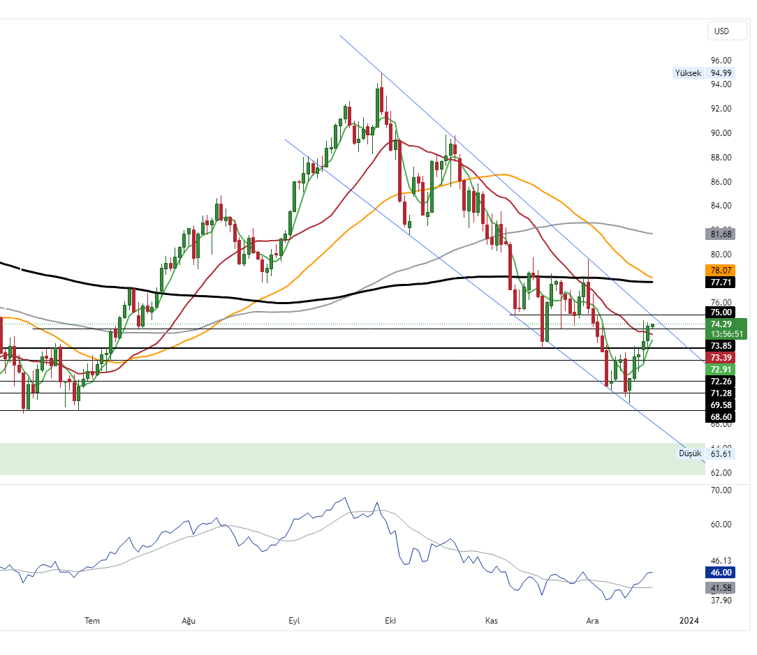Petrol fiyatları, OPEC+ üyelerinin üretim kısıntılarına uyup uymayacakları konusunda piyasalarda şüphe olması ve petrol arzının talebi karşılayamayacağı endişesiyle düşmüştü. Fakat Fed’in gevşek para politikası ve petrol stoklarında görülen düşüş petrol fiyatlarını yükseltti. Piyasalar aynı zamanda Kızıldeniz’deki durumu izliyor. Mısır, ABD’nin Yemen’de İran destekli Husilerin attığı 14 İHA’yı imha ettiğini açıkladı. Bölgedeki tansiyonun yükselmesi, sevkiyat aksaklıkları yaratacağı korkusuyla fiyatları destekliyor. Yeni günde ABD’den ham petrol stokları verisi fiyatlar için kritik olacak.