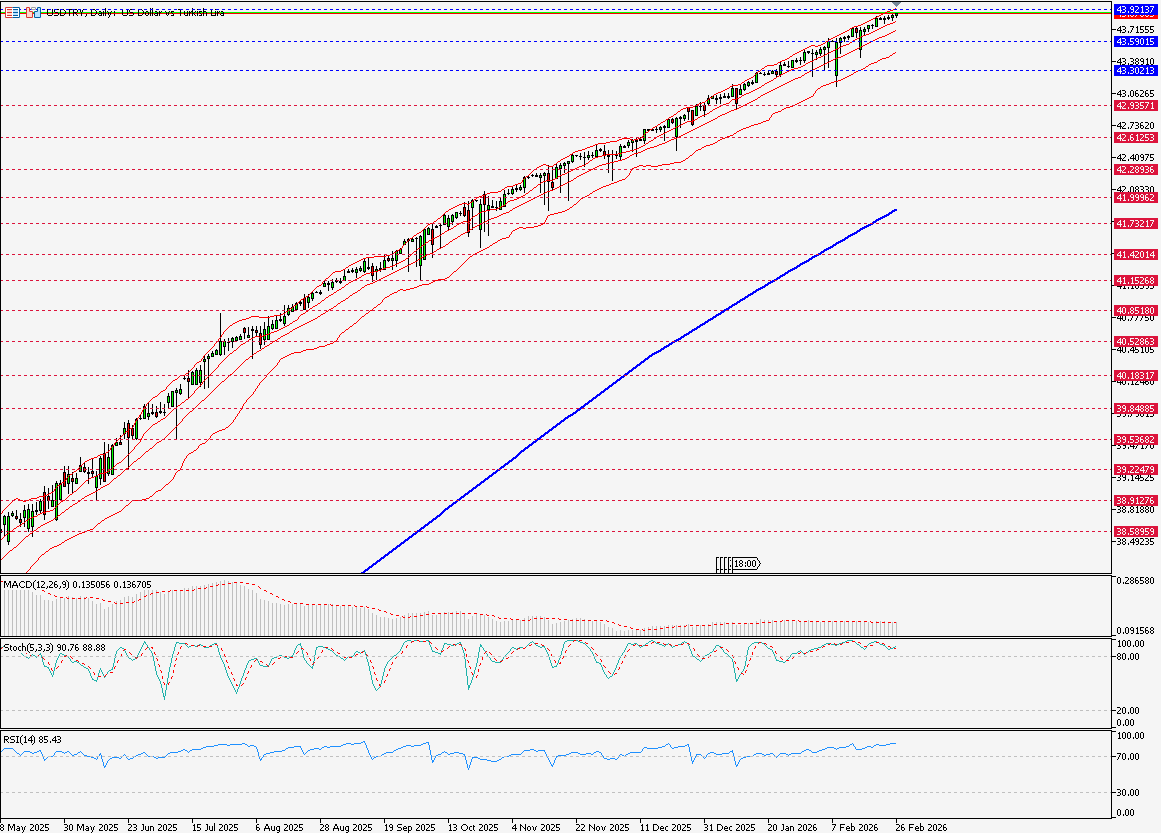 Dolar/TL, yeni güne küresel dolar talebinin canlı kalması ve yurt içinde açıklanacak kritik makro veriler öncesinde 43,87 seviyelerinden başladı. TCMB’nin likiditeyi kurutmaya yönelik depo alım ihaleleri ve ‘sıkı duruş’ mesajları, kurdaki yukarı yönlü iştahı frenleyen ana unsur olmaya devam ediyor.