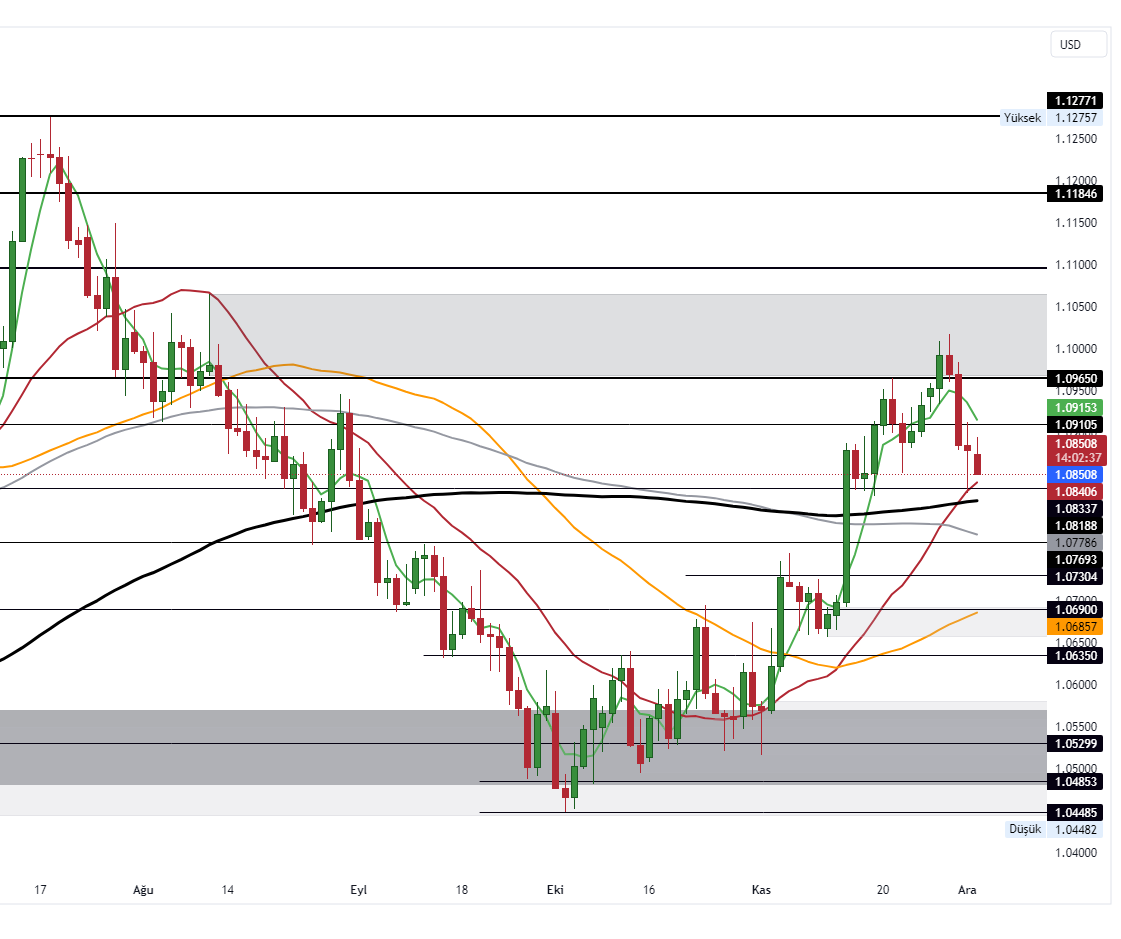 Dolar endeksindeki toparlanma hareketinin devam etmesi EURUSD paritesinde geri çekilmenin devam etmesine neden oluyor. Piyasalar Euro bölgesinde enflasyonun Kasım ayında yıllık %2,4, aylık ise %0,5 düştüğünü gösteren veriyi geçen hafta izledi. Gelen veri beklentilerin altında kaldı. Euro bölgesinde enflasyonun gerilemesi, Avrupa Merkez Bankası’nın faiz indirimine daha çabuk gidebileceği beklentisini güçlendirdi. Yeni haftada ise ekonomik takvimde ABD’den Tarım Dışı İstihdam verisi haftanın en önemli verisi olarak öne çıkıyor. Veri Cuma günü açıklanacak. Haftanın ilk gününde ise ECB Başkanı Lagarde’ın konuşması takip edilecek.