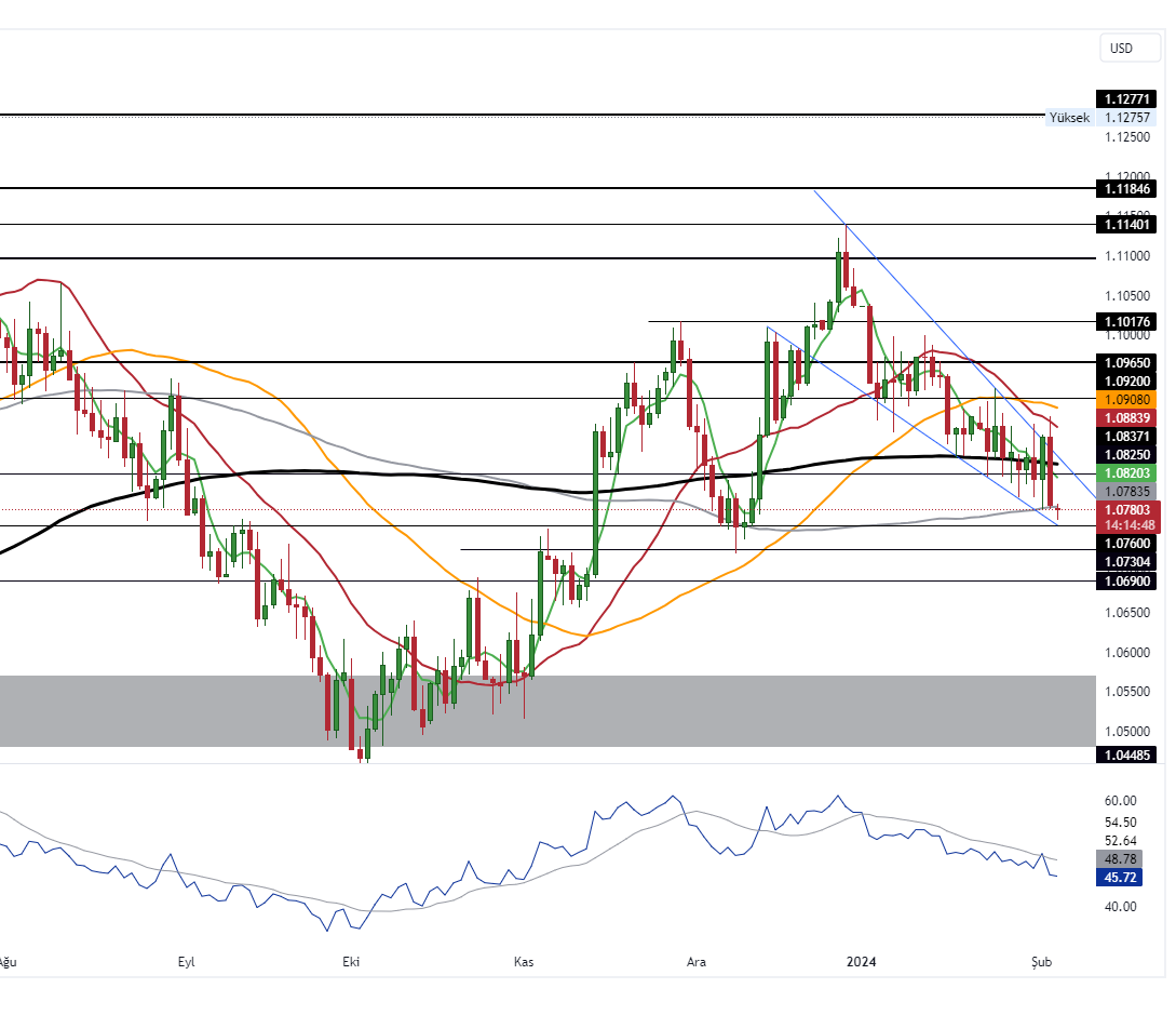 Tarım dışı istihdam verisiyle birlikte sert yükselen dolar endeksi, EURUSD paritesindeki aşağı yönlü trendin devam etmesine neden oldu. Gün içerisinde 1.0783 (100GHO) ve 1.0825 seviyeleri direnç, 1.0760 ve 1.0730 seviyeleriyse destek olarak takip edilebilir.