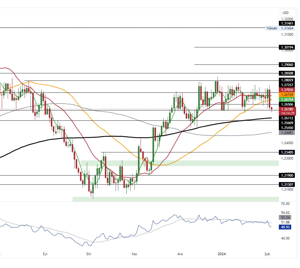 Cuma günü açıklanan tarım dışı istihdam verisinin ardından yukarı yönlü hareketlenen Dolar endeksi, GBPUSD paritesinde kazançların silinmesine ve aşağı yönlü hareketlerin gelmesine neden oldu. Satıcılı seyrin devam etmesi durumunda 1.2610 seviyesi ve 1.2560 - 1.2545 bandı kısa vadeli destekler olarak takip edilebilir. Olası toparlanma hareketlenmelerindeyse 1.2650 ve 1.2680 bandı izlenebilir.