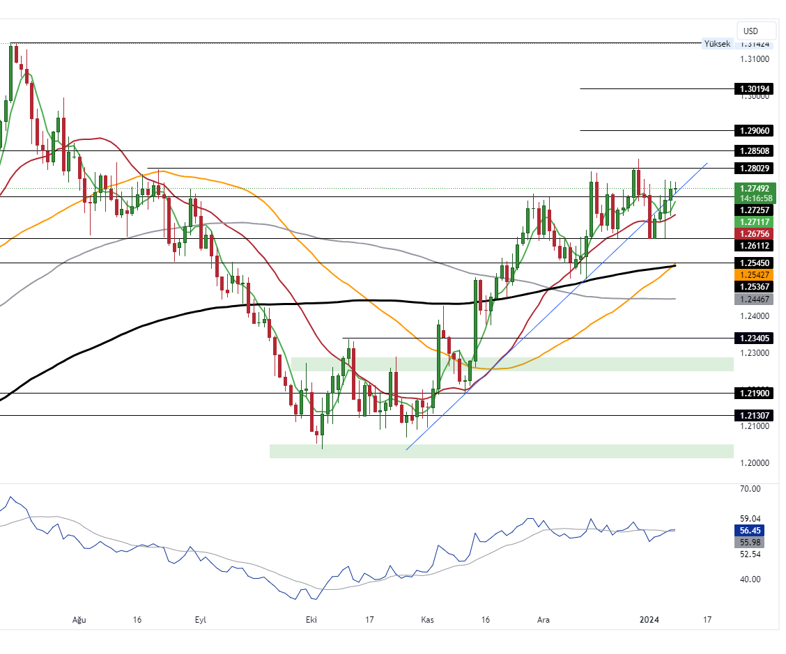 Gün içerisinde 1.2802 ve 1.2850 seviyeleri direnç, 1.2725 ve 1.2675 (22GHO) seviyeleriyse destek olarak takip edilebilir.